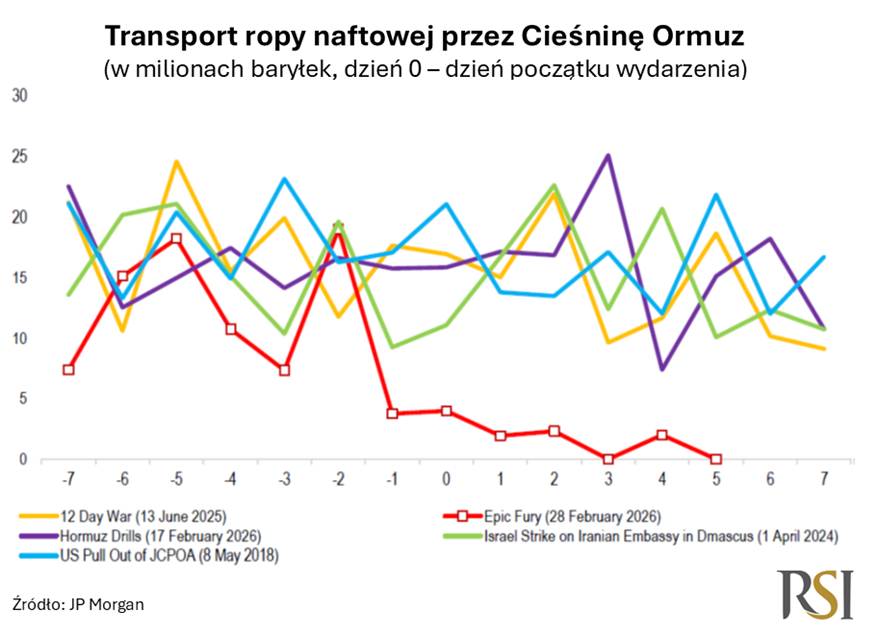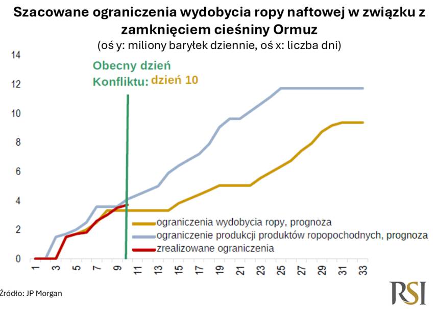 Na pewno jeszcze nieraz w trakcie trwania tego konfliktu usłyszycie o Cieśnienie Ormuz, a to kiedy zostanie ona odblokowana warunkuje także powrót do normalności, przy czym jest to warunek konieczny, ale nie jest to warunek, który w 100% wystarcza do tego, żeby zaraz powrócić do stanu sprzed konfliktu. Im dłużej cieśnienia będzie zamknięta, tym większe ryzyko, że coraz bardziej produkcja ropy w krajach Zatoki Perskiej będzie ograniczana, ze względu na niemożność pozbycia się tej ropy z magazynów i z pól naftowych. Im dłużej to trwa, tym powrót do normalności będzie nawet po otwarciu Cieśniny Ormuz trwał dłużej.