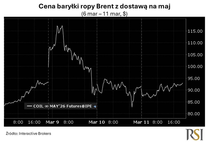 Co prawda w dalszej części dnia i tygodnia panika ustała, głównie za sprawą newsów, które pojawiały się w przestrzeni publicznej. Z jednej strony Amerykanie zadeklarowali, że operacja w Iranie przebiega bardzo sprawnie i powinna zakończyć się nawet szybciej niż w okresie 4 czy 5 tygodni, który był pierwotnie deklarowany, co oczywiście mogło sugerować, że także przepływ towarów przez Cieśninę Ormuz zostanie w miarę szybko wznowiony.